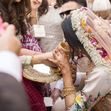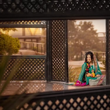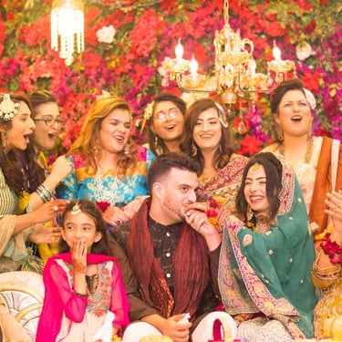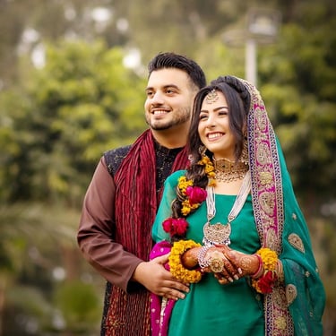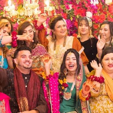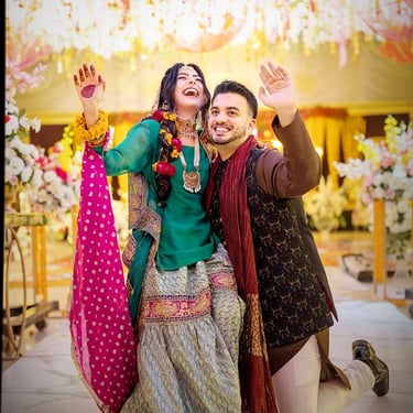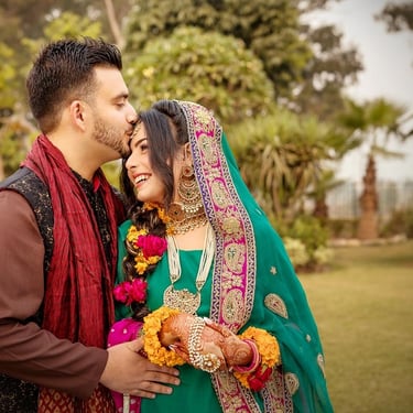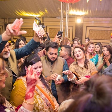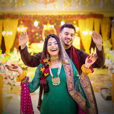 The Joyful Mehndi Ceremony The Mehndi ceremony is a celebration of colors, dances, and pure joy for any couple. For this gigly beautiful couple, the day was filled with laughter, traditional music, and vibrant outfits. Friends and family gathered to apply intricate henna designs on the bride's hands and feet, while everyone danced to the beats of traditional tunes, creating memories to last a lifetime.