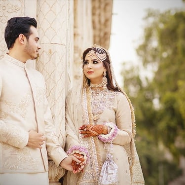 The combination of Badshahi Mosque and Hazoori Bagh is unparalleled for any couple looking to start their marital journey with elegance and tradition. Namrah and Mujtaba's choice of these iconic venues illustrates their commitment to having a culturally rich and unforgettable wedding experience. From the spiritual ambiance of the mosque to the romantic allure of the garden, every element was meticulously planned to ensure a day filled with magnificent memories. This perfect combo indeed sets a high standard for what a dream wedding can be. Namrah and Mujtaba's wedding day was more than just a union of two hearts; it was a celebration of culture, beauty, and love. The day began with a sacred ceremony at the majestic Badshahi Mosque, moving onto a lush, picturesque photoshoot at Hazoori Bagh. This seamless blend of historical and natural beauty embedded their wedding day with timeless elegance and charm, making it truly unforgettable. Indeed, choosing such iconic venues made their wedding an ideal way to begin their lifelong bond.