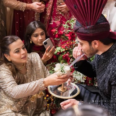 The emotional nikkah ceremony was the heart of Haseeb and Laiba's wedding saga and perhaps the most touching segment of the event. As they exchanged vows, surrounded by loved ones, the atmosphere was filled with love and blessings. Following this solemn moment, the baraat day brought about a mix of joy and nostalgia, perfectly captured in each frame. The heartfelt rukhsati was particularly poignant, symbolizing the beginning of their new life together, and it tugged at the heartstrings of everyone present. Additionally, the fun of doodh pelai brought laughter and happiness, creating unforgettable memories for the couple and their families.